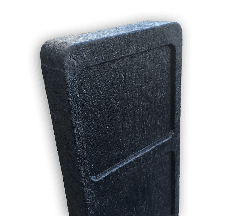 Verzwaarde huisnummerpaal van gerecycled kunststof, voorzien van 2 uitsparingen aan twee zijden voor plaatsing van o.a. huisnummerbordjes.